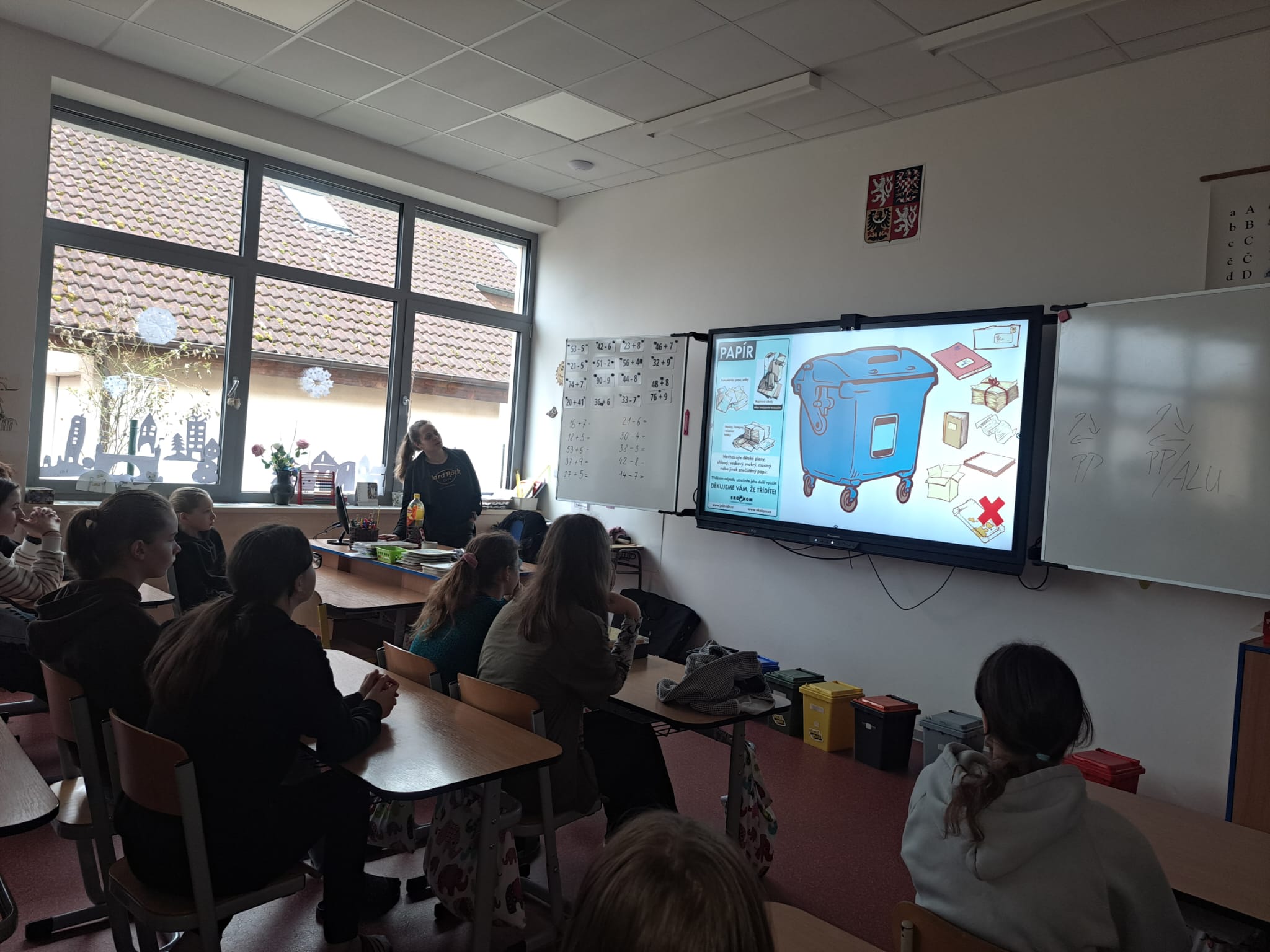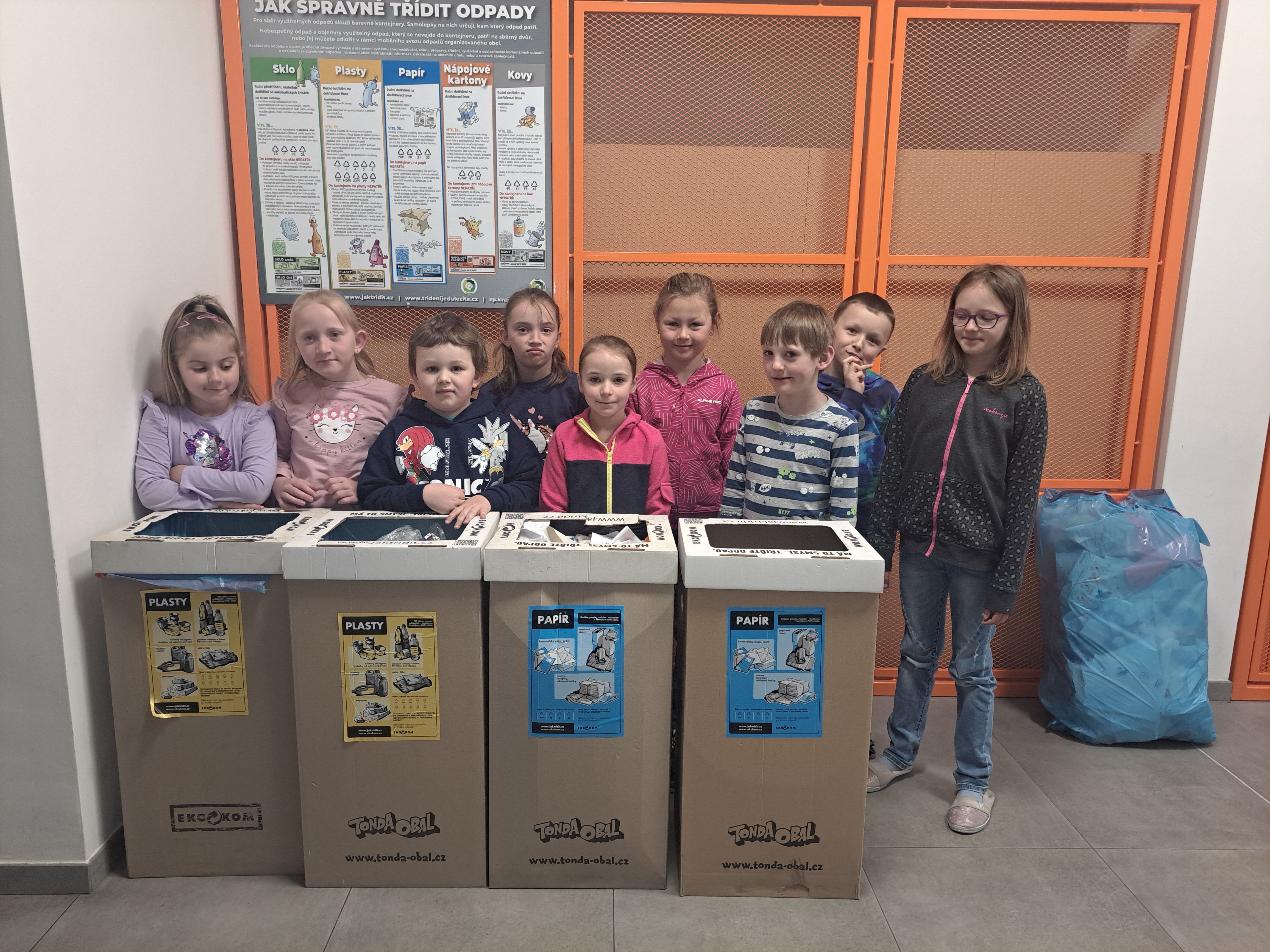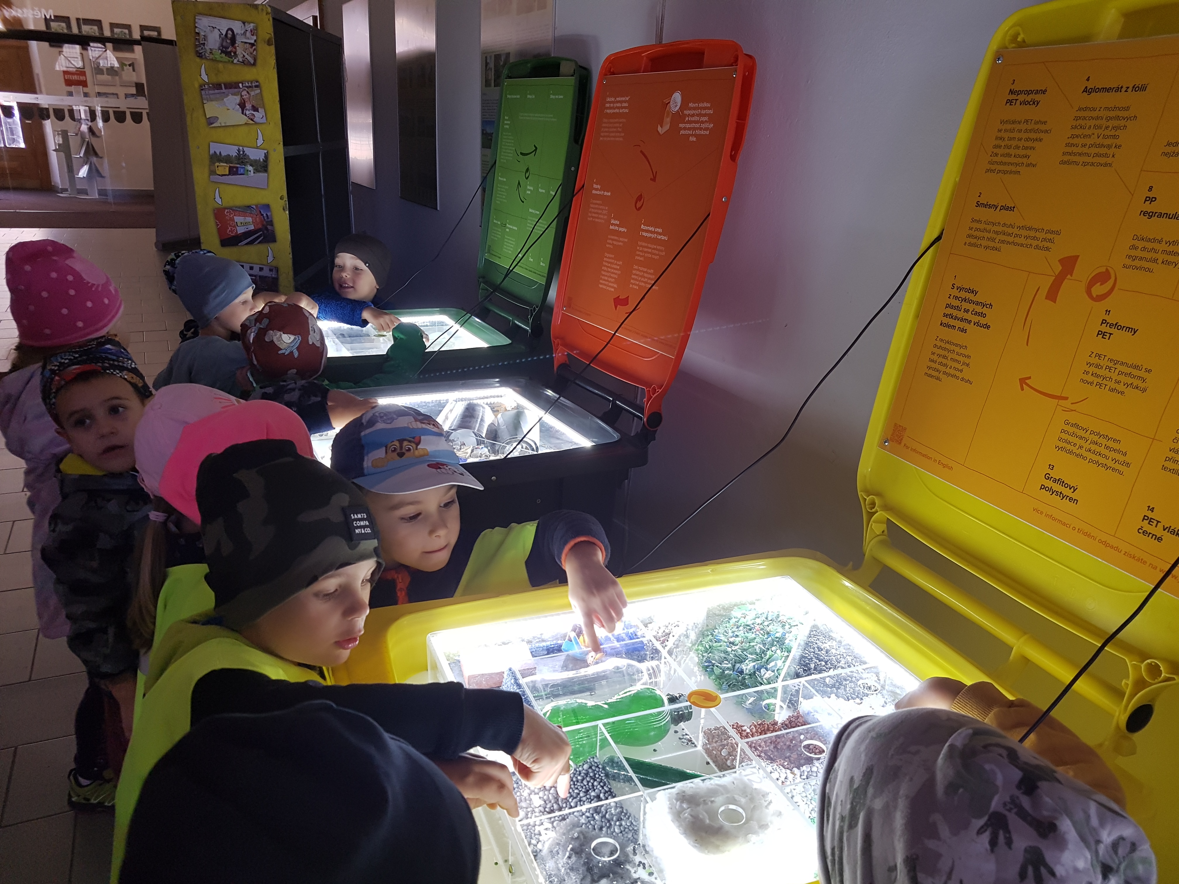 Návštěva výstavy od firmy EKO-KOM na naší Městské radnici. Děti zde mohly vidět výstavu recyklaci odpadů, která interaktivní formou vysvětluje smysl recyklace a třídění odpadu. Zde mohly pozorovat popelnice na třídění odpadu, mohly hádat z čeho jsou vyrobené předměty a posadit se v kontejnerové lavičce