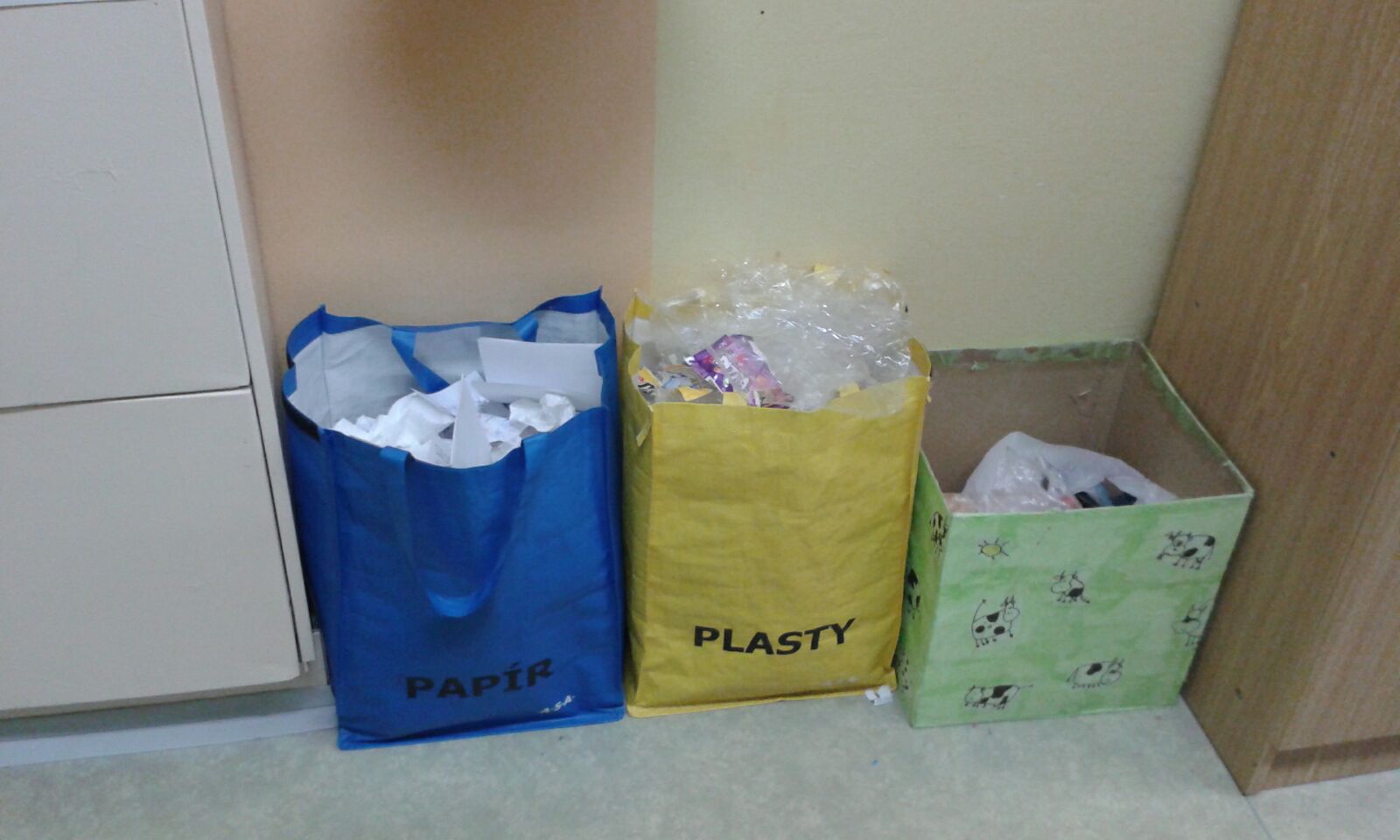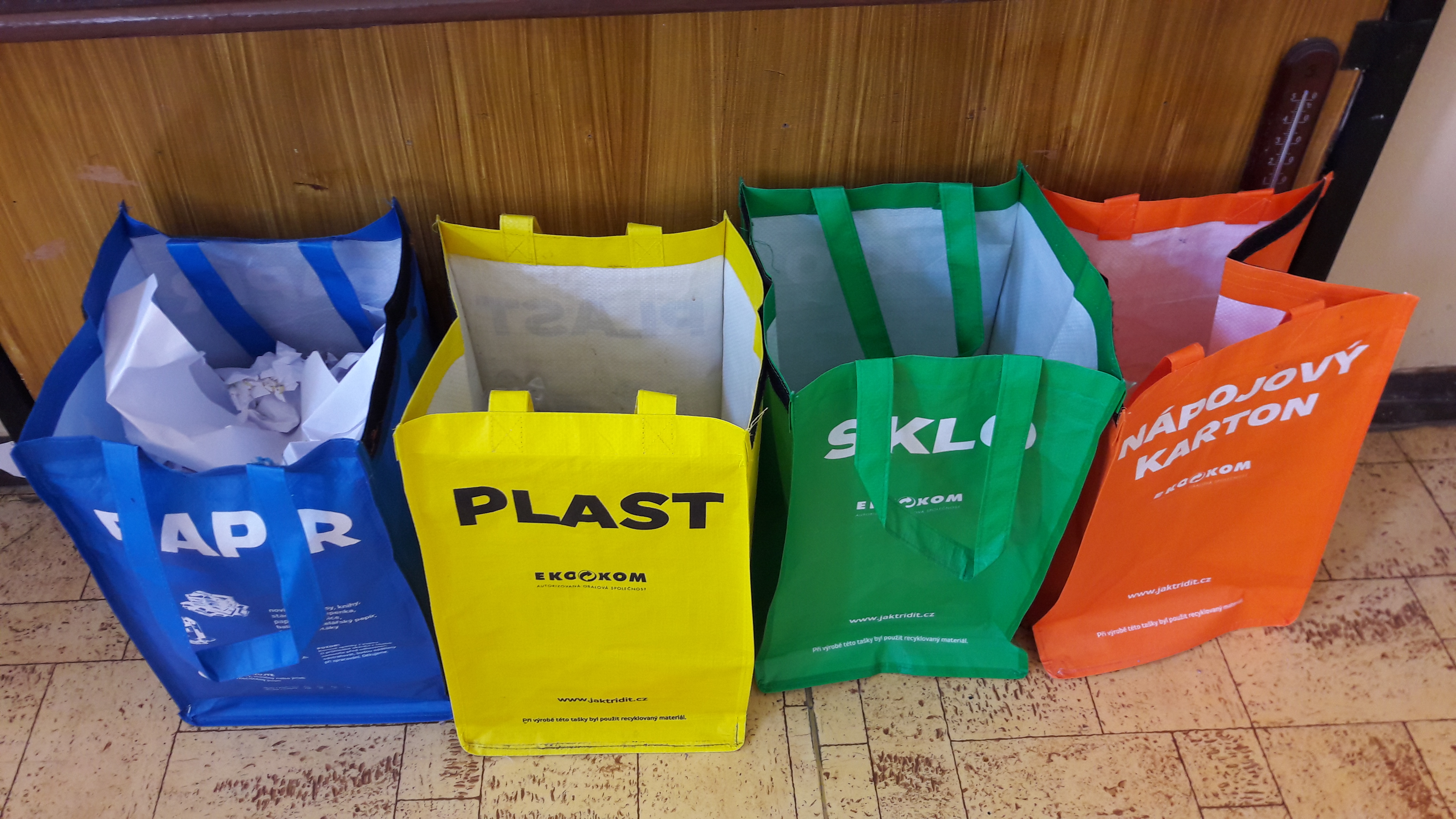 Z veřejné sbírky náš ekotým zakoupil nové koše na tříděný odpad.