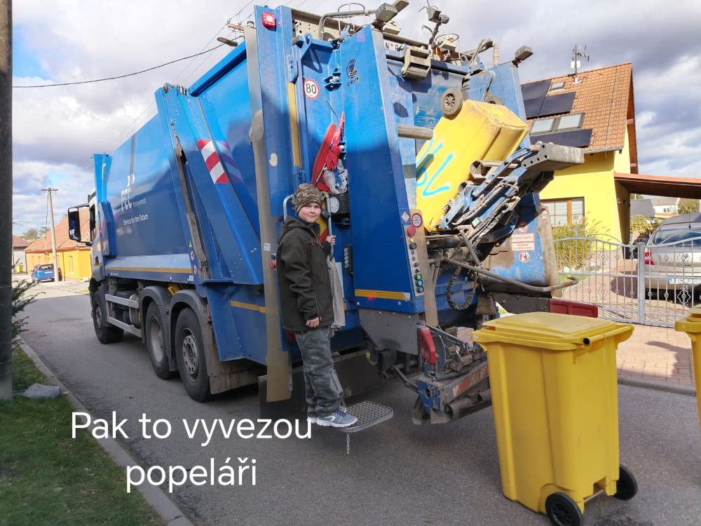 Odvoz plastů popelářským vozem.